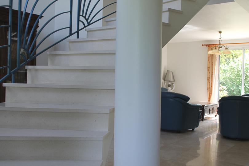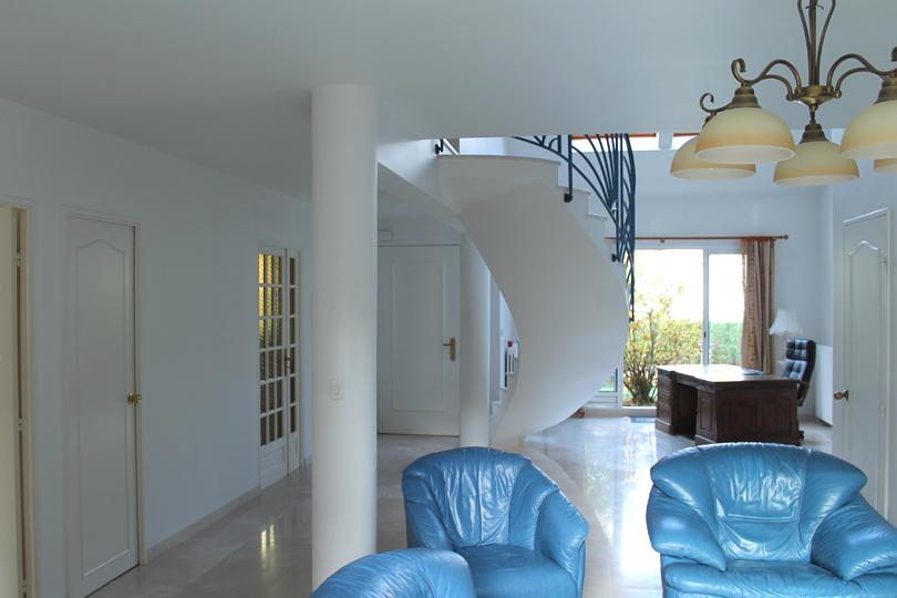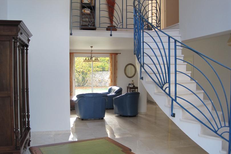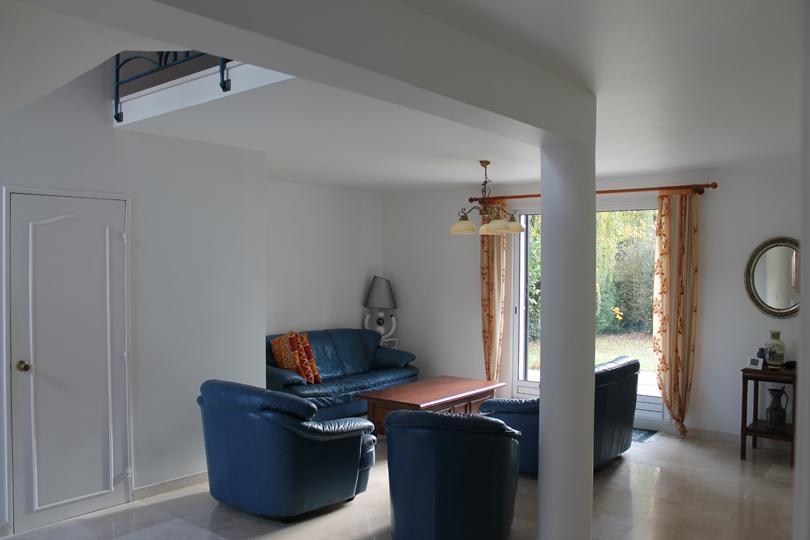 Séjour traversant (nord/sud) partiellement cathédrale et carrelé de marbre avec accès à la terrasse et au jardin |