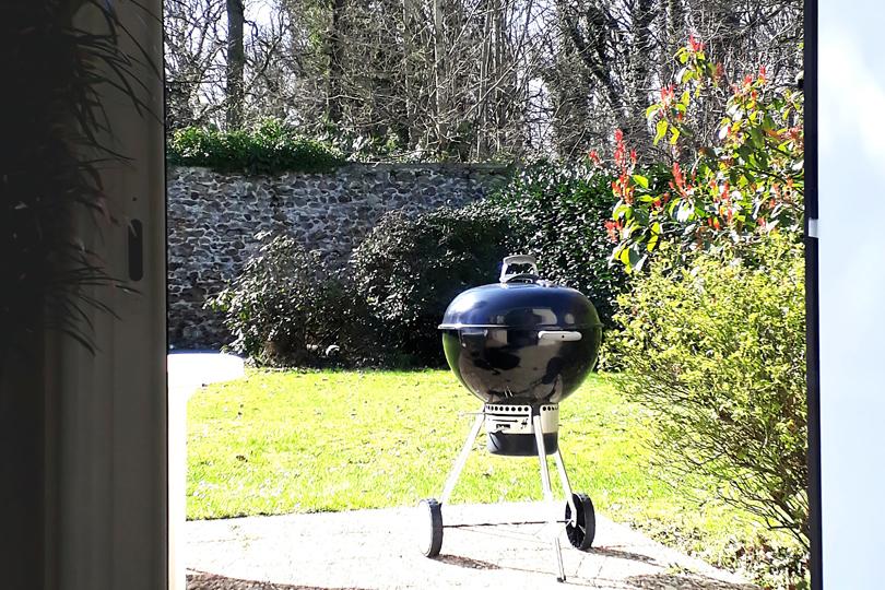 Cuisine séparée, aménagée et équipée avec espace repas avec accès à la terrasse et au jardin |